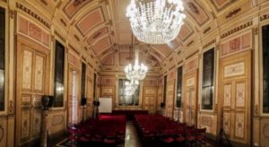 nel Salone degli specchi del Palazzo Serra di Cassano, Napoli.